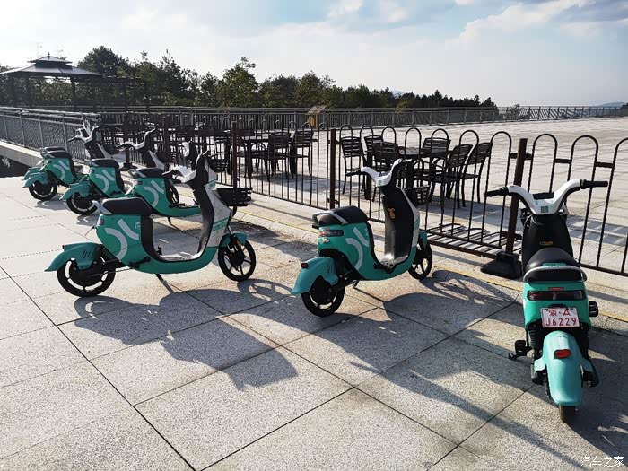 宽大的停车场边一排电动单车儿子跃跃欲试,他试探着问我会骑自行车这个也会骑么,不就是想骑吗,安排。