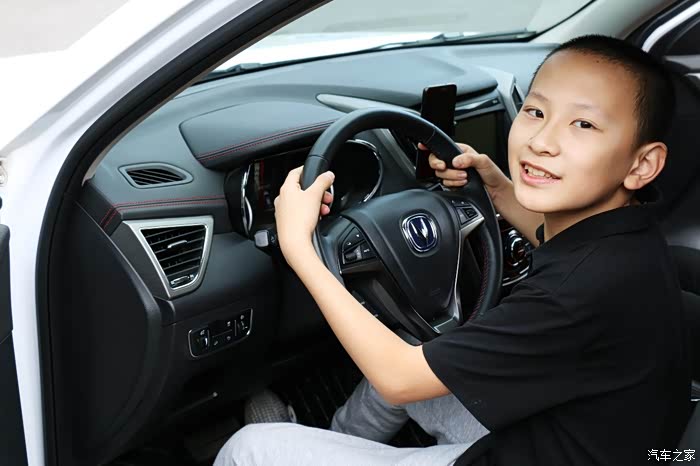 儿子假装开车,摸了摸方向盘,给他胆子可能真的可以开得走小白