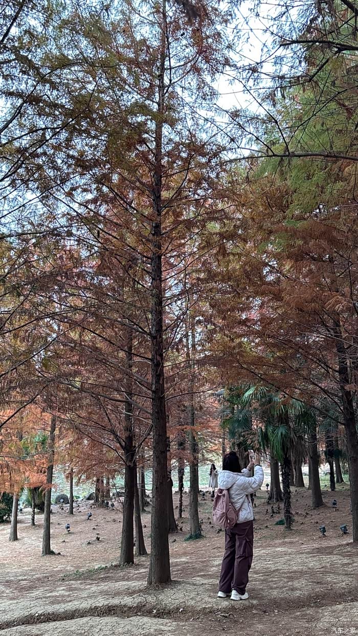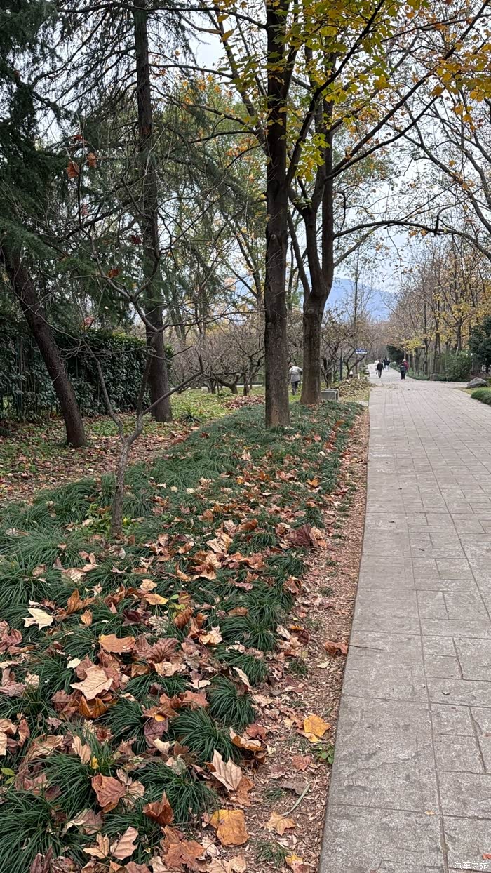 是选择3号门进,因为3号门打车直接到门口了,走几步就能到检票口,我们到了的时候还10分钟就要收钱了,旁边有个大爷还大声喊让我们快点,要收费了。进了3号门后就以5号门为出口,开着百度,虽然没有按照网上找到的路线,但是这样跟着导航,也打卡了落羽杉,看了梅花鹿,枫叶,梧桐路,石像路,还看到了撒树叶的大爷,E人的妈妈还过去找大爷拿树叶拍照。