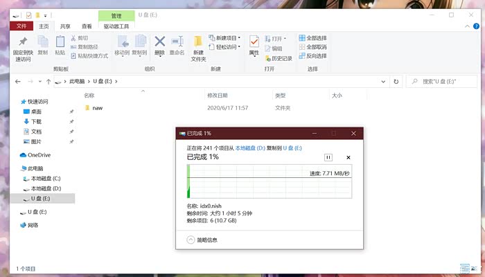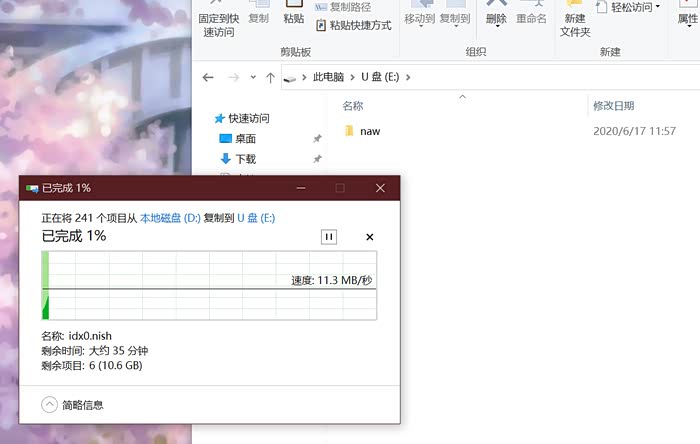 开始复制到TF卡,只是这卡的速度有点慢,要1个多小时,唉