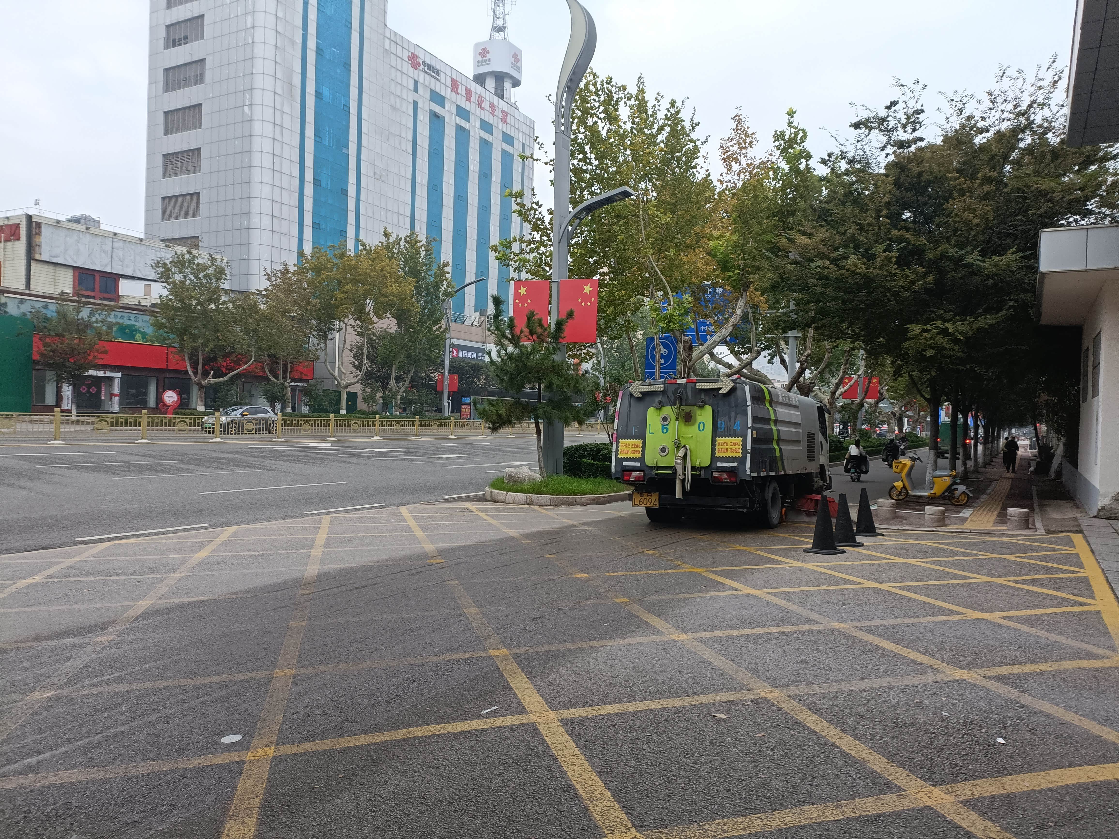 清晨上班,正好碰见一辆清扫车。由于连日的阴雨天,路滑落叶较多。当整个城市还未完全苏醒时,洒水车已经开始工作了。它缓缓行驶在街道上,喷出的水流如细密的珠帘,将路面冲刷得干干净净。绿植在水汽滋润下更显生机,为这座城市开启了清新的一天。