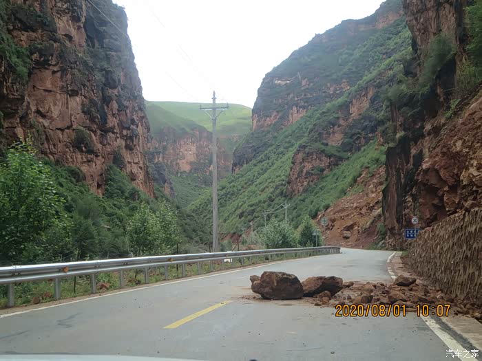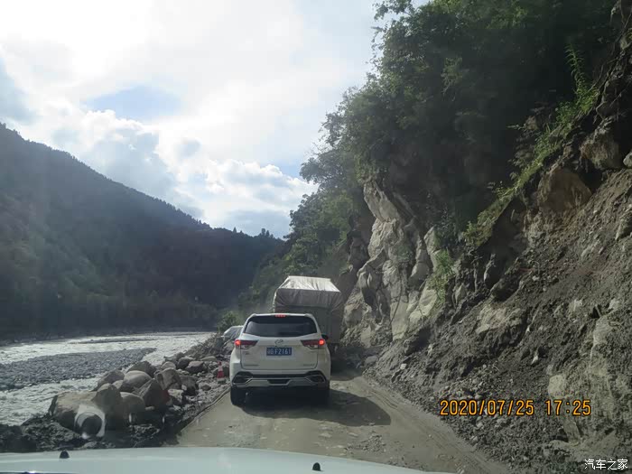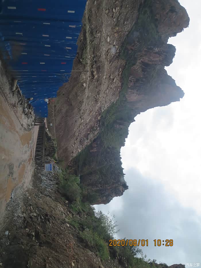 第一次堵车6小时,下午5点多放行后,继续往前走了约二十公里,又遇到二次堵车,堵了一个多小时,放行后又走了十几公里,再次第三次遇堵车。等了约半小时,听说前面还有一个大滑坡,正在施工抢修,一边修,山上的石头一边落下,危险,今晚是通行不了了,而且过了晚上8点,就封路不让通行了。