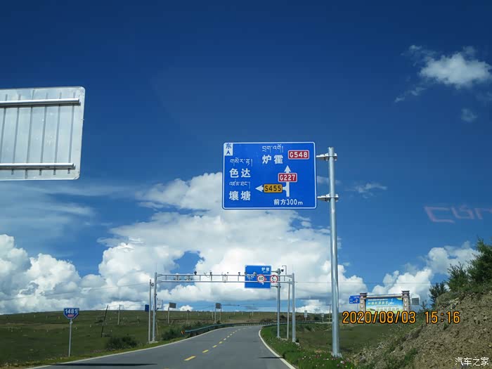前方拐入省道S455,可以去色达,去年川西大环线游的时候,就是从那路口拐去游览五明喇荣佛学院,省道S455去色达沿途的风景很漂亮。
