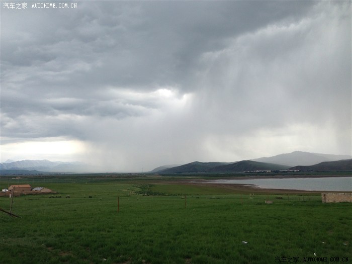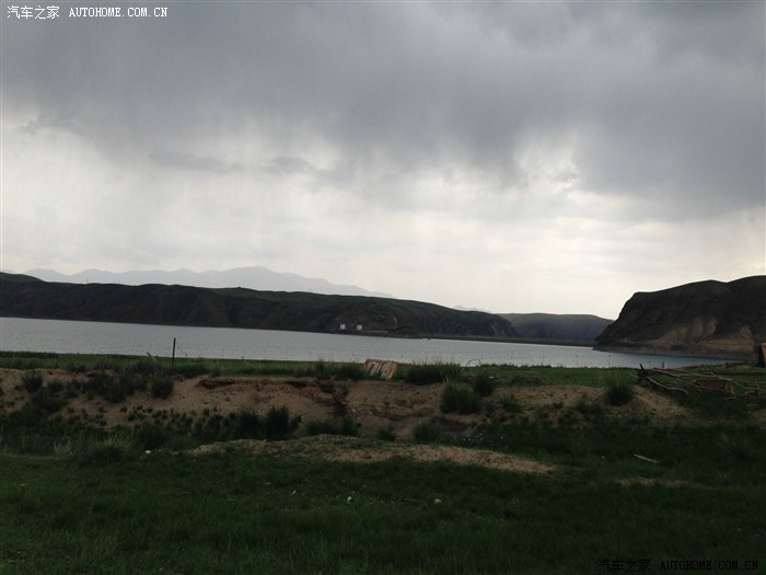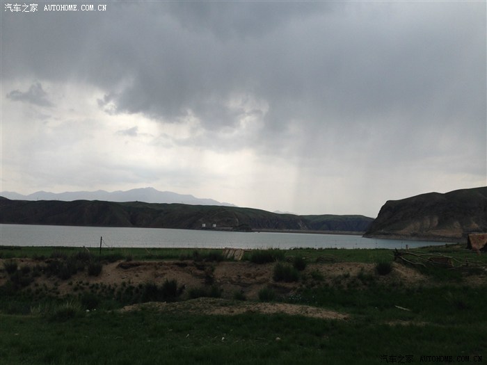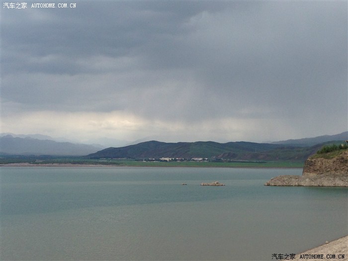 皇城水库到了,看到吗,远处下着暴雨,还有雪山。
