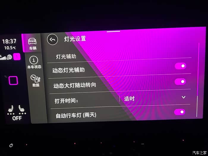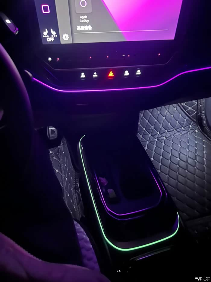 车内的氛围灯也是很绚丽,主灯副灯还可以不同颜色分别展示,很是好看。