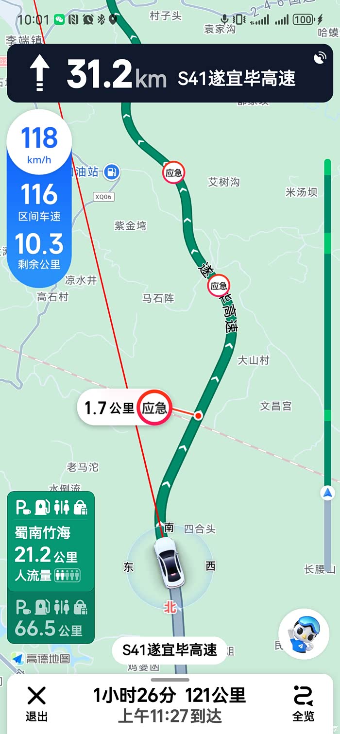 从宜宾临港到威信县导航显示耗时2个多小时,主要途经遂宜毕高速进入云南境内。出发时天气还算好,阳光透过车窗洒在座椅上,暖融融的。老爸坐在副驾,时不时和我聊两句路况,老妈则靠在后排,翻看着手机里的风景照片,偶尔指着窗外掠过的田野惊呼“你看那片菜长得不错”。