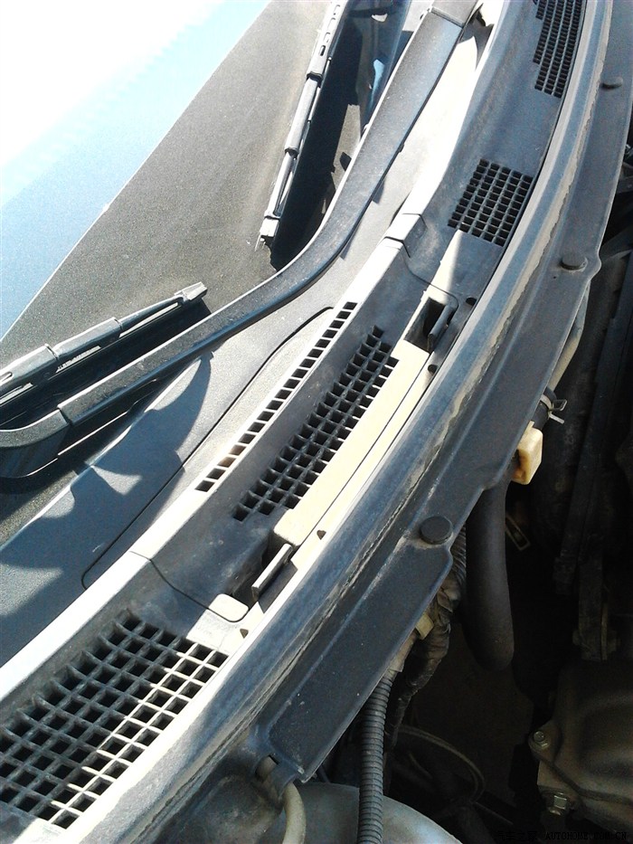 我为了防止杨树花等大的异物进入到空调风扇及蒸发箱内而无法排出去产生异味,特意弄了一小块钢编网用3M胶粘在进风口处,效果很好,大家都可以弄一个。