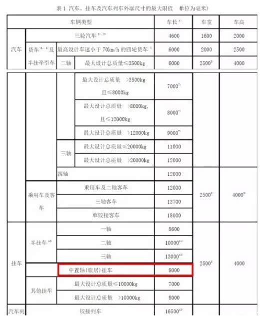 根据中华人民共和国国家标准GB1589-2016《汽车、挂车及汽车列车外廓尺寸、轴荷及质量限值》4.1.1.2表2其他汽车、挂车及汽车列车外廓尺寸的最大限值规定:中置轴、牵引杆挂车的长度限值为12000mm,宽度限值2550mm,高度限值4000mm,其中车厢长度限值为8000mm(中置轴车辆运输挂车除外)。乘用车列车的长度限值为14500mm,宽度限值2550mm,高度限值4000mm。