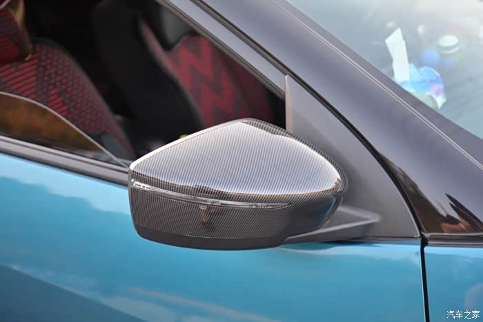 后视镜更换了电动后视镜,带有镜片加热,后视镜盖换成了碳纤维的,整体提升了车辆的高贵度有木有?