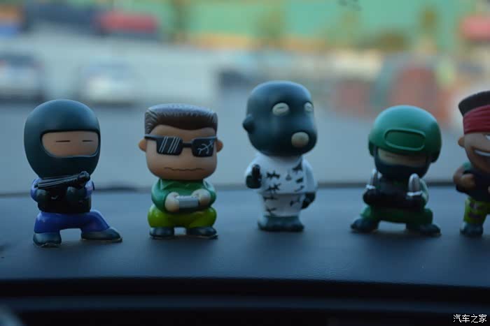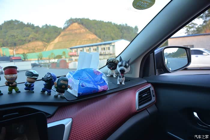 内饰方面,我放了好多东西,哈哈哈很温馨吧,这些小人出自Q版cs里的,有人认识吗。旁边两只狗可以摆动脑袋的,