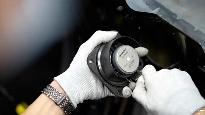 因为提前接了无损对接线束,所以喇叭安装非常简单,直接对插就好了。接着螺丝固定好。