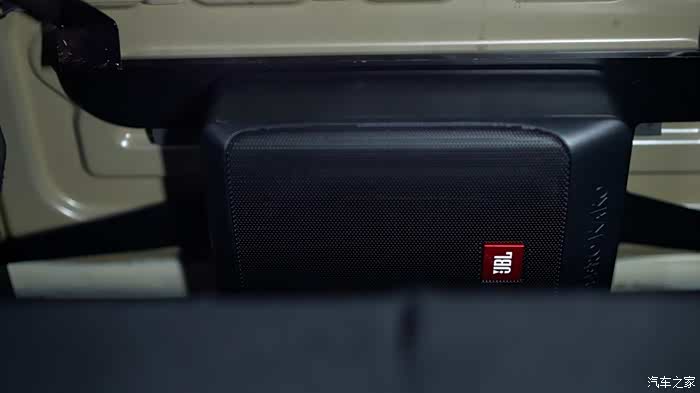 低音炮就安装后备箱门板上,用了一个类似八爪鱼的专用配件,可以非常牢固地将低音炮固定住,这样还能最大限度节约后面的空间,不得不说,JBL这个专用套装是真用心了。