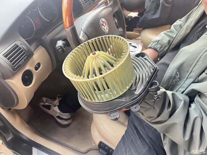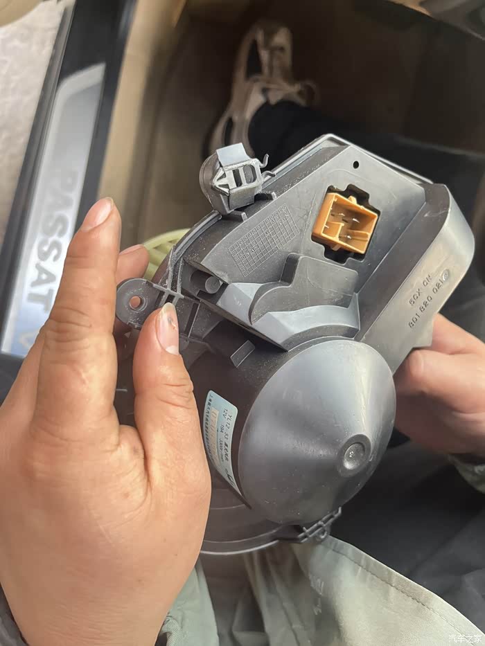 经过看电脑,然后实际拆了看问题,我们发现大概率是鼓风机的问题,更准确的来说应该是鼓风机电阻的问题,可是帕萨特领驭这代鼓风机和电阻是一起的无法分开替换,那就赶紧买一个全新的整体件吧。