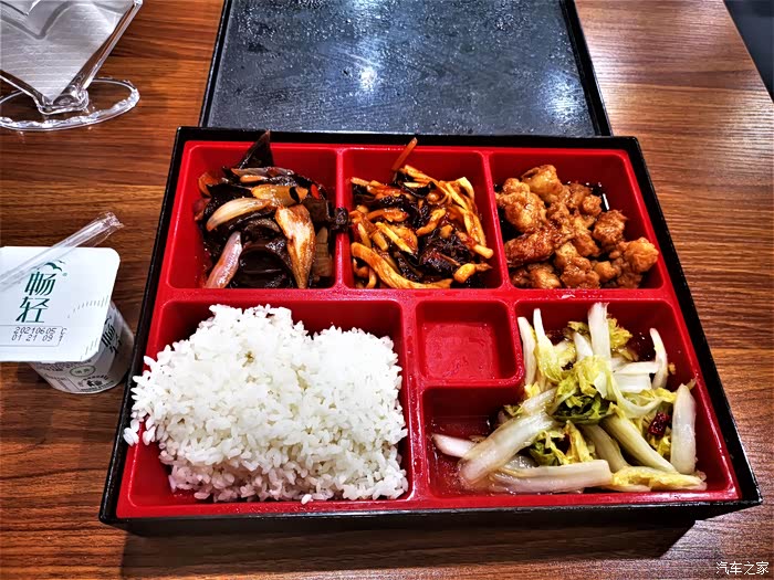 我走进餐厅,还在餐厅里蹭了顿免费的午餐。说实话:相比杭州几个奔驰老4S店,这里的快餐有点简陋
