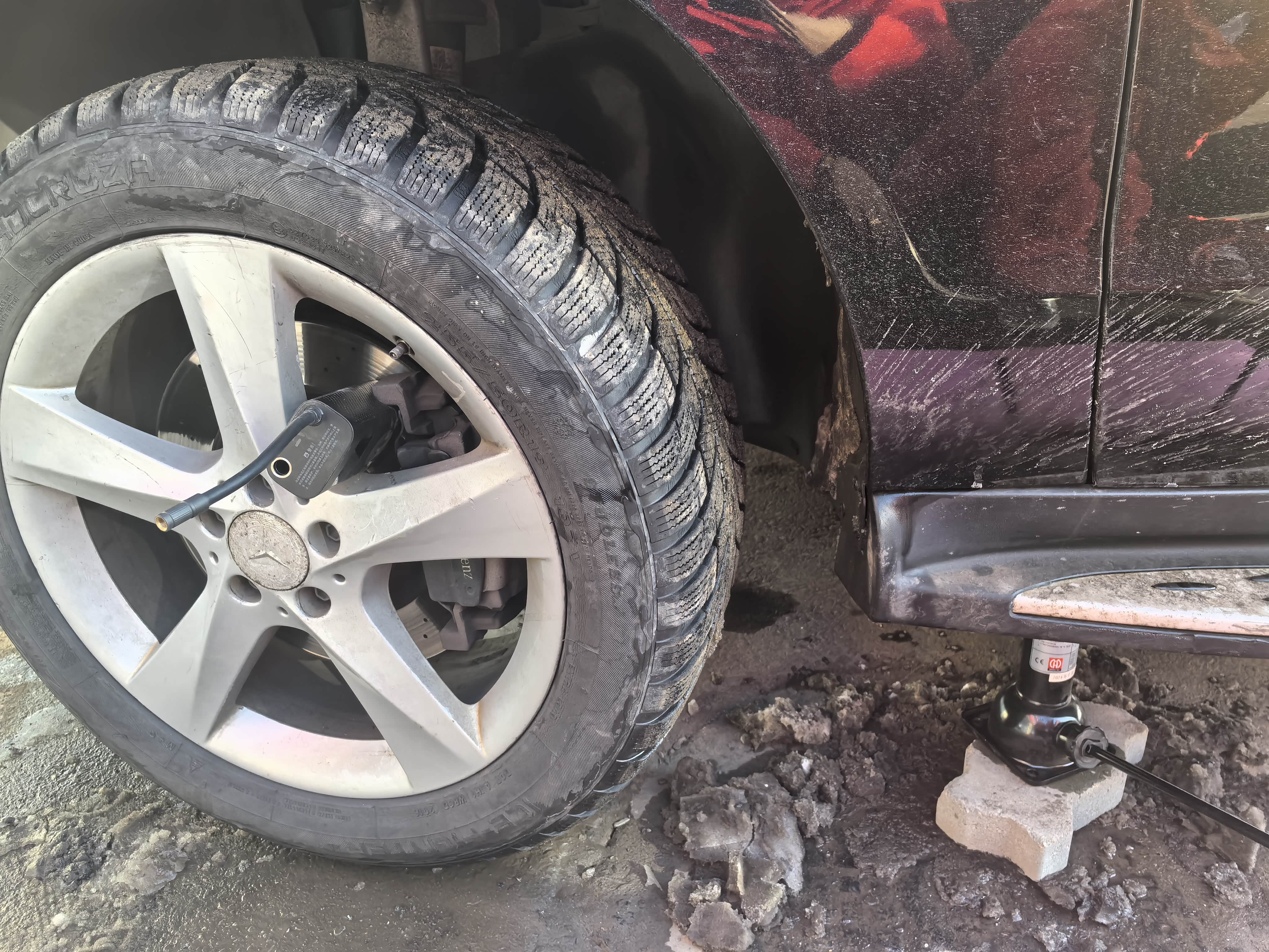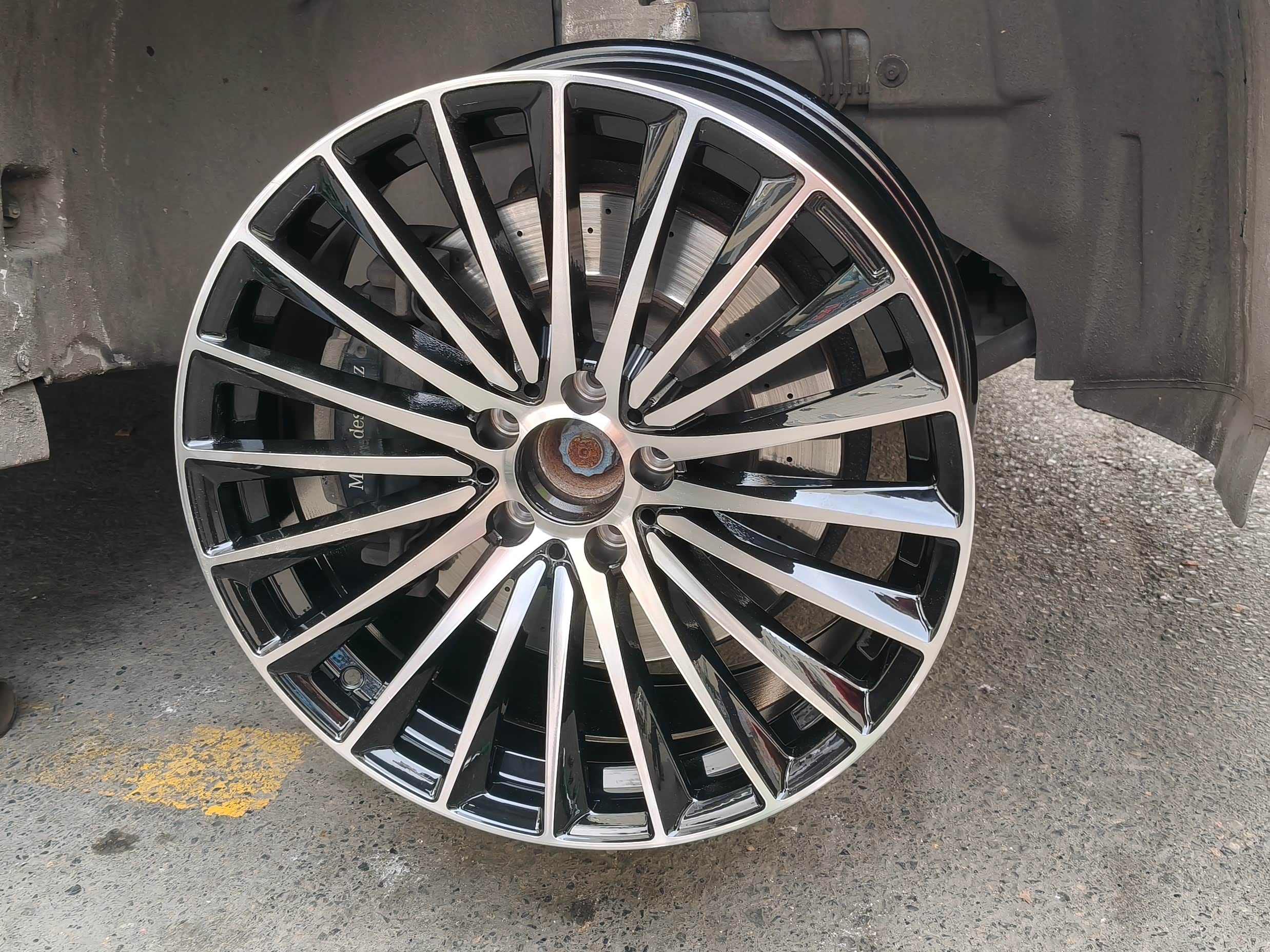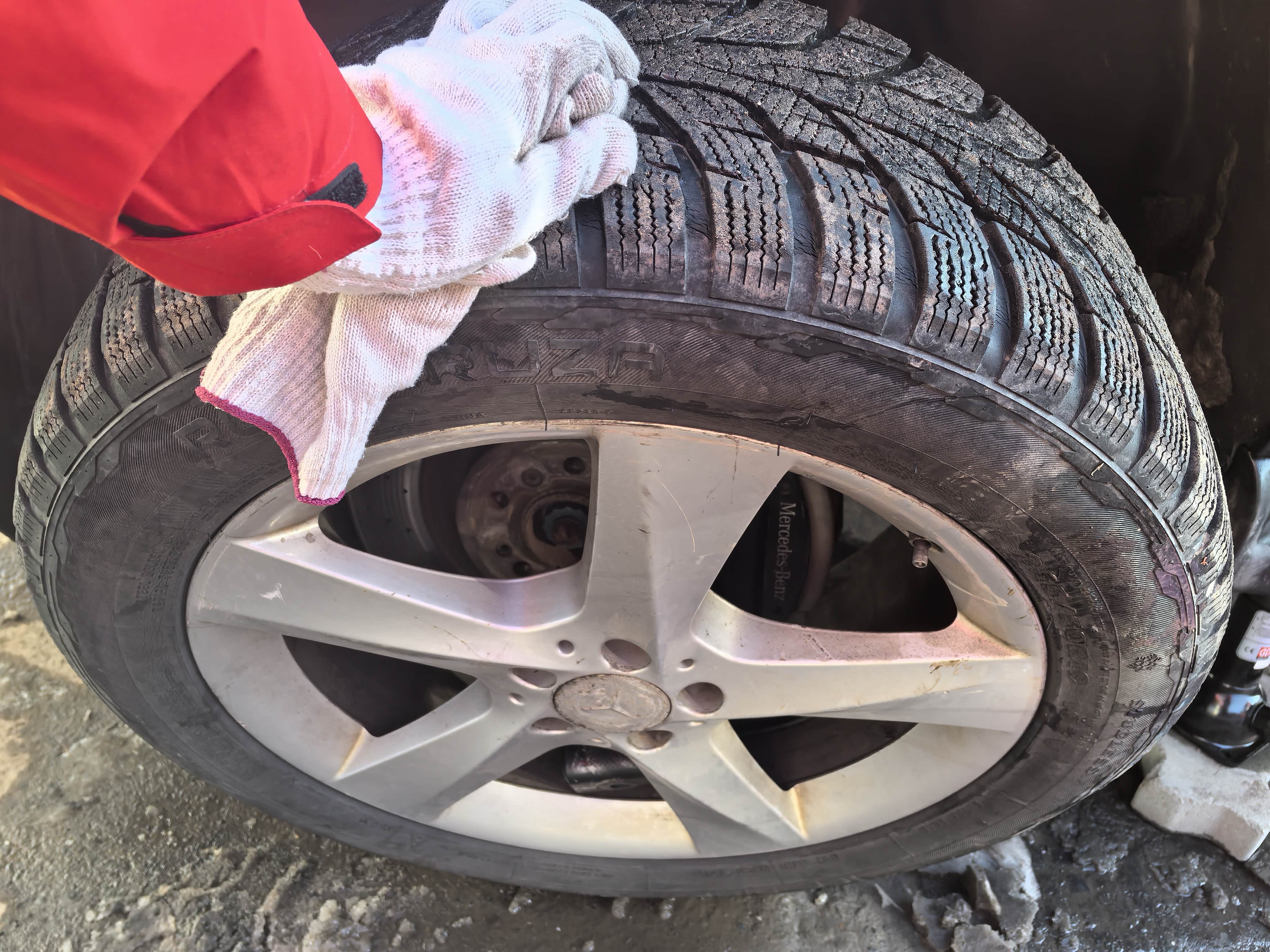 这奔驰ML保有量少,论坛都没了,原厂参数轮毂早就成了稀有物品,退而求其次选了ET36的旋压多幅轮毂,ET值变小,轮胎微微外凸,视觉上饱满好看,600多一个,也不影响使用,再换四条崭新雪地胎,这波马上能简单收尾:换四套轮胎轮毂、抛光灯罩、换个大灯灯泡,齐活提走。