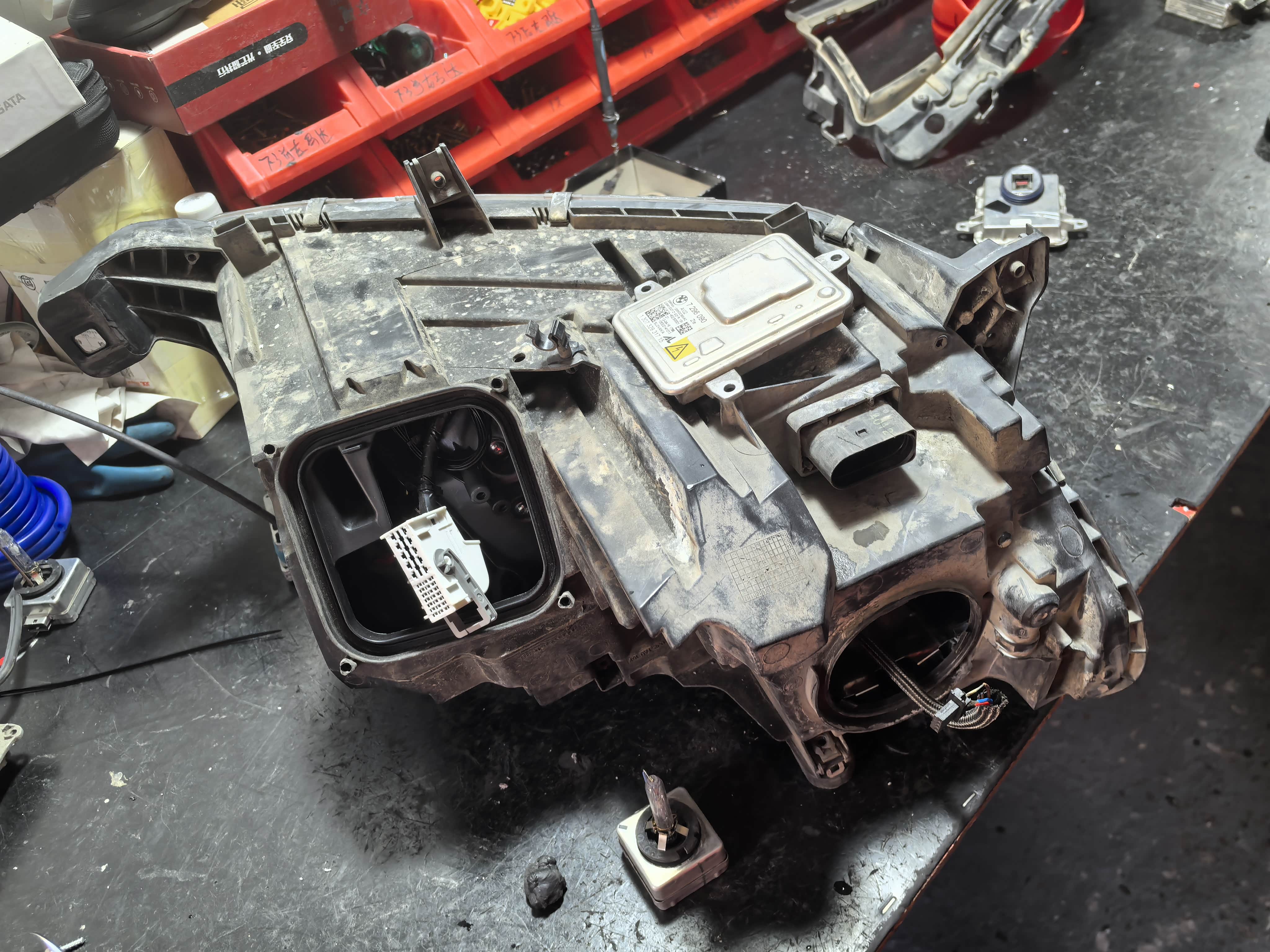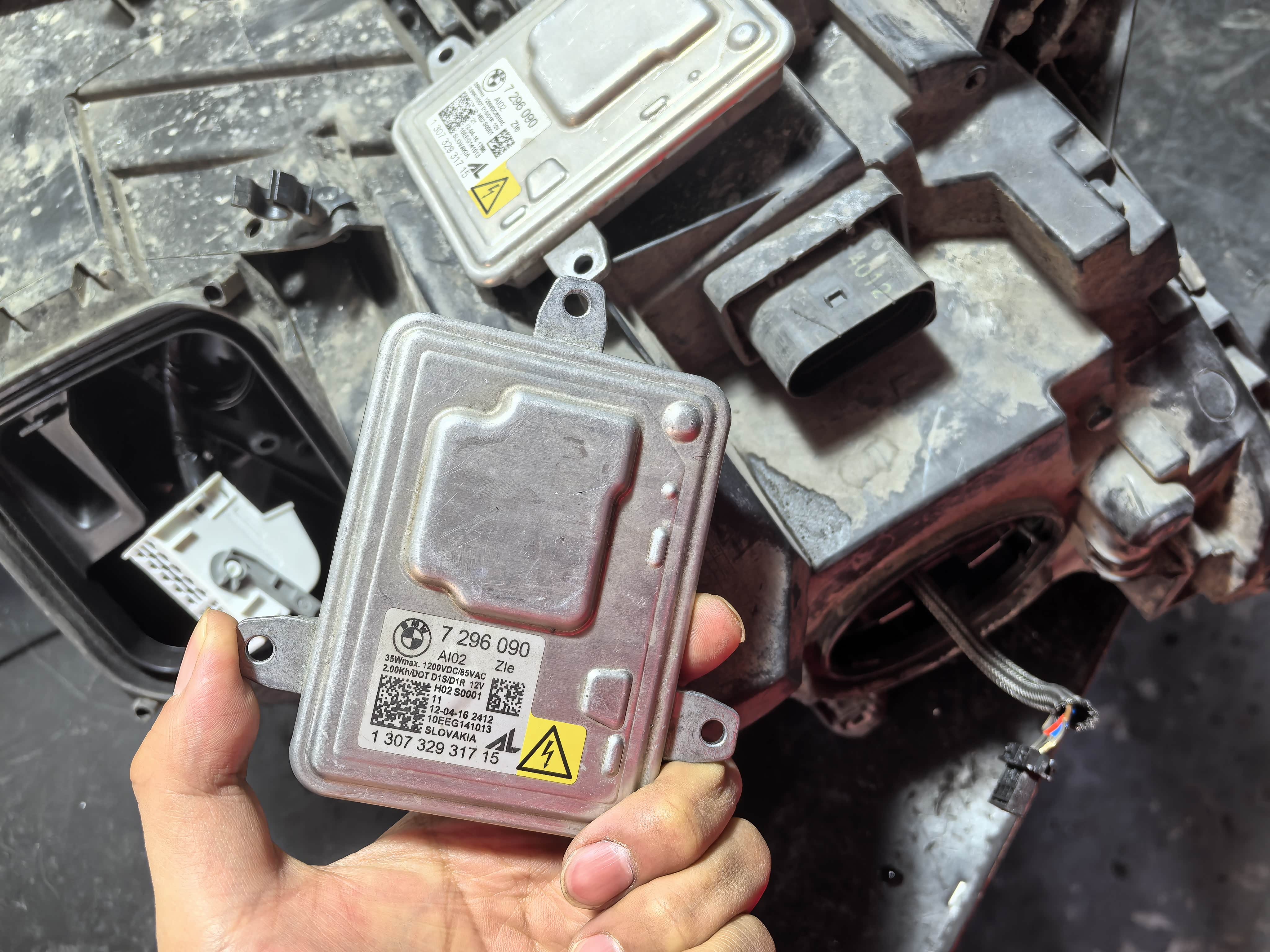没办法,先找电工大神排查,从白天查到半夜,毫无头绪;又拉去对面奔驰专修店检测,两位专业电工大神一番操作,结论高度一致:大灯驱动板烧了。