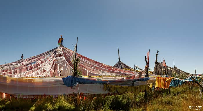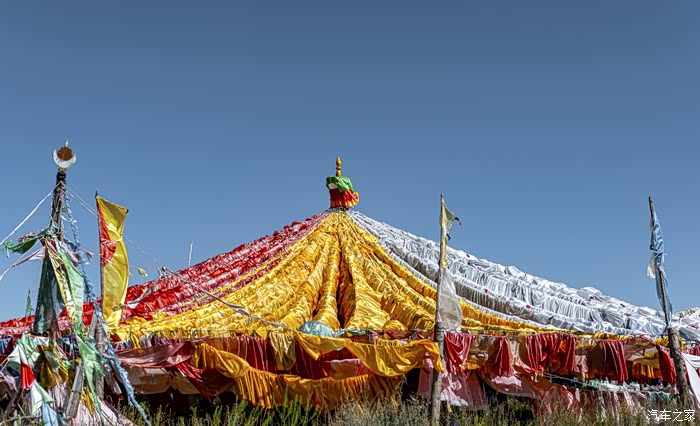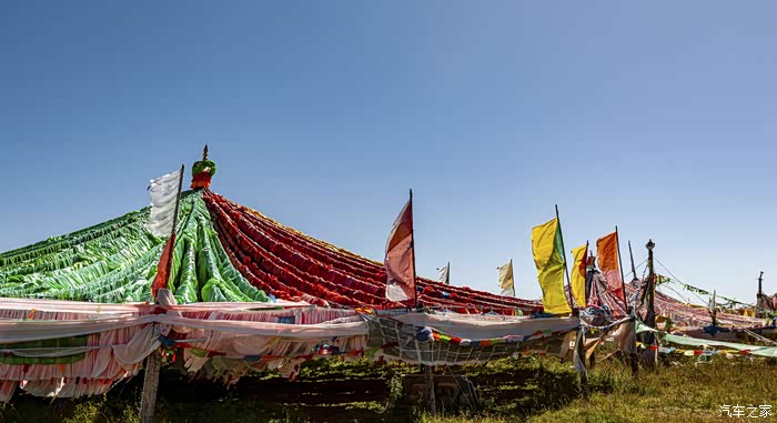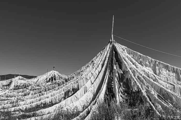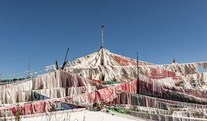 经幡在藏区的挂法各有不同,唯有瓦切塔林的经幡像圆顶帐篷似的,而且经幡的面积之大也为藏区所罕见。