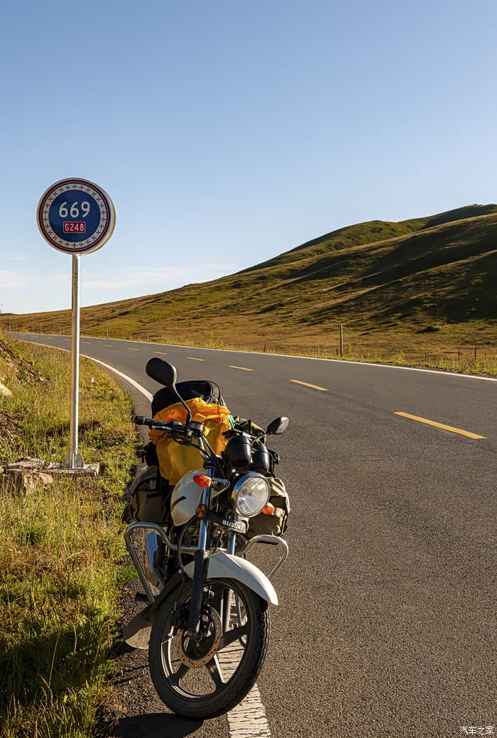 清晨的路边,享受阳光。我的坐骑,一路相伴,不得不说,铃木的小机器确实做得不错,稳定性非常好,力气不小,油耗还不高,全程维护在2个油左右。