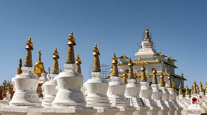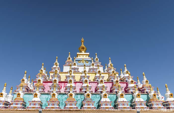 二是佛教将人生烦恼分为108种。为了消除烦恼,需要108个念珠、108个钟鼓和108本佛经。在此基础上,建造了108座佛塔,意思是消除烦恼,就像顶级佛珠是由108颗佛珠组成的。佛教建筑有其基本思想,隆重叙事,是藏人固有的信仰特质。