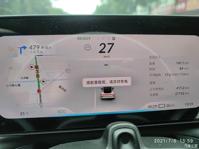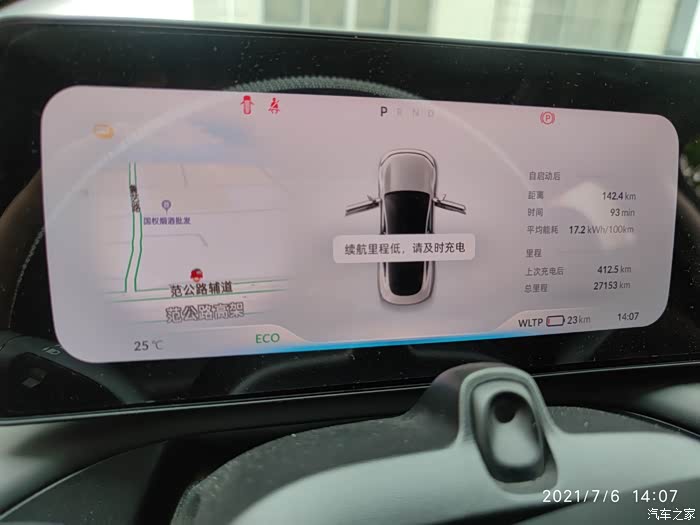 这时候离着充电桩还有几公里,电量也到底了,已经提示要充电了,模式也从运动换成eco,动力没受限。心里一点也不慌马上到了。