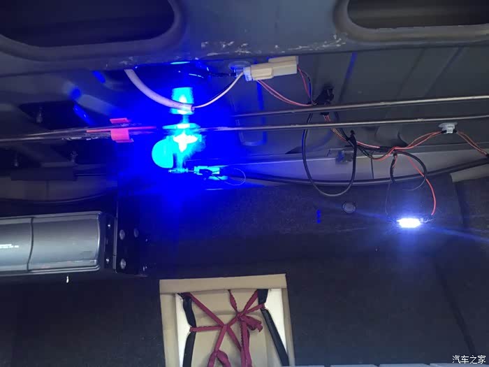 氛围灯是改良了的,折腾了几个小时,刚开始接线是接抽屉箱灯插座上的,因为不稳定,所以空闲时间就全部改了,直接接到了室内保险盒的点烟器保险上面(和行车记录仪是一个接法),具体的没有拍照片。有机会再上吧。