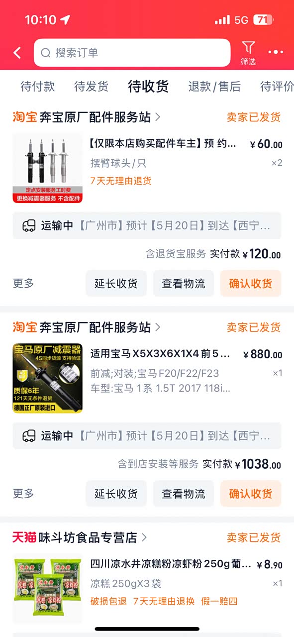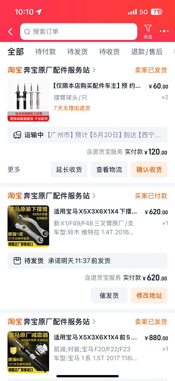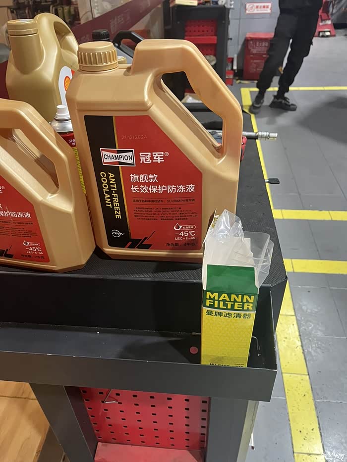换了机油机滤,空气,空调滤芯,汽油滤芯,火花塞,防冻液,前面两个避震也漏油了,还有三角支臂胶套也要一起换掉