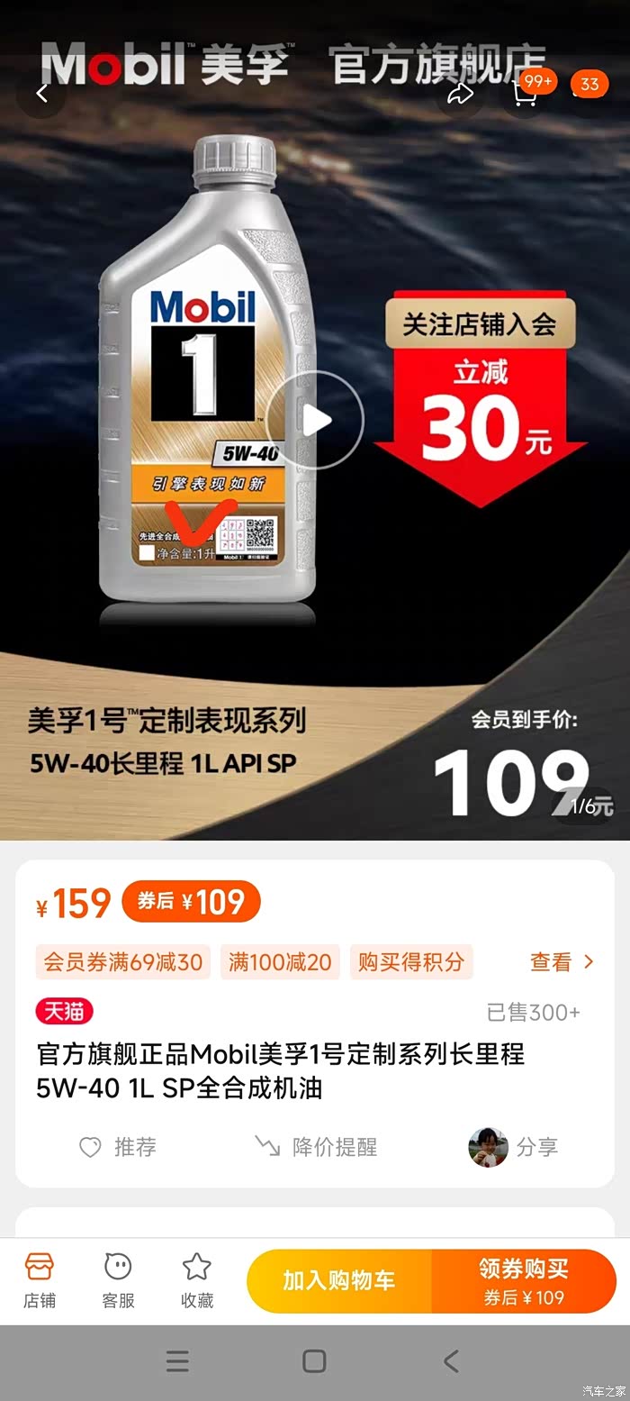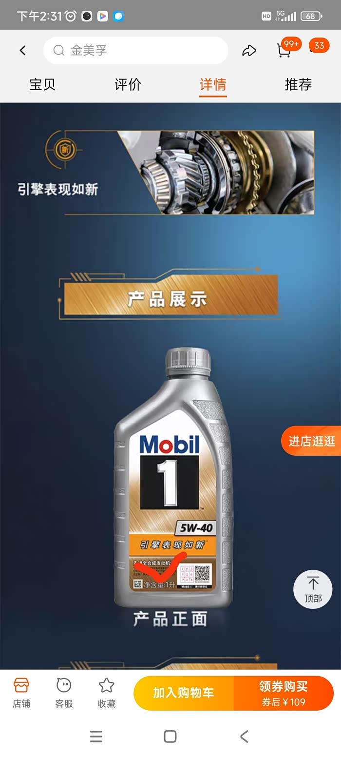 刚刚在天猫旗舰店美孚页面上发现的问题,居然有两种金美孚一号?