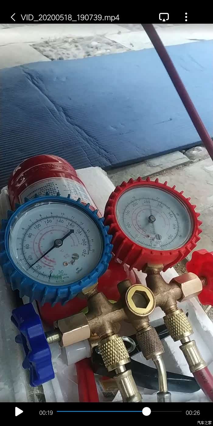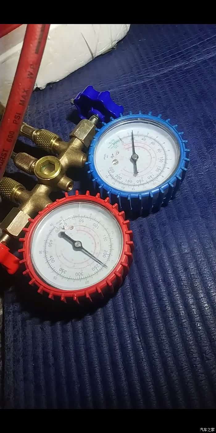 我赶紧关闭阀门 停了发动机 测了下 的确氟利昂加多了 加了900g 前后空调的是950g 单空调的是750-800g 但是想想也不对 多加了10%有这么大反应么?