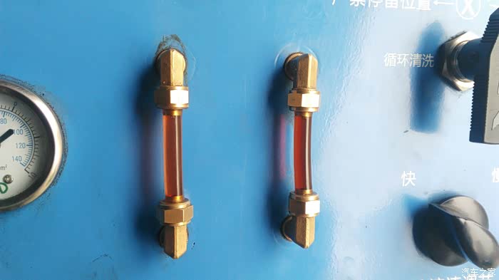 在循环机更换过程中,新旧油交替就好像做血液透析一样,可以通过视窗窗口清晰的看出新旧油的交替,旧油窗口的颜色从深黑色逐渐变成红色,直至新旧油颜色一致。 (现在明显能看出 旧的变速箱油已经基本彻底的循环无几了)