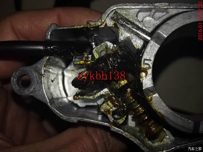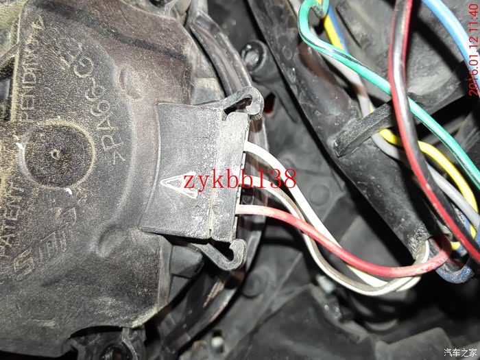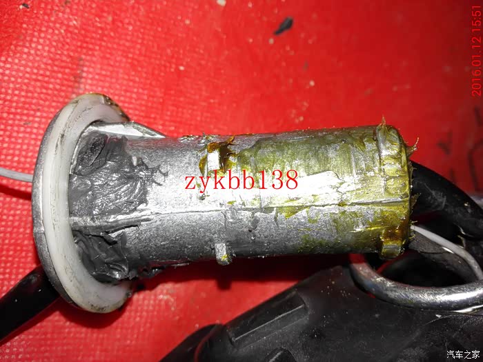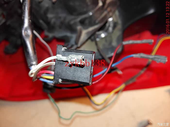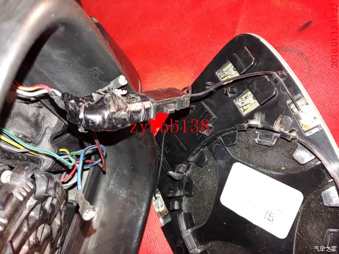 电子防眩目的接头,当时没有买链接插头,用热熔胶打住了,拆不下来,没办法只能掐断,哎!: