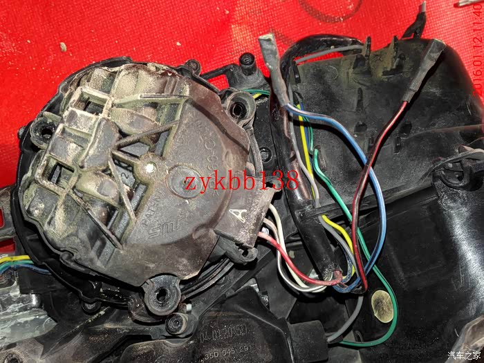 拆掉镜片后,看到里面调节镜片的电机和各条线束:
