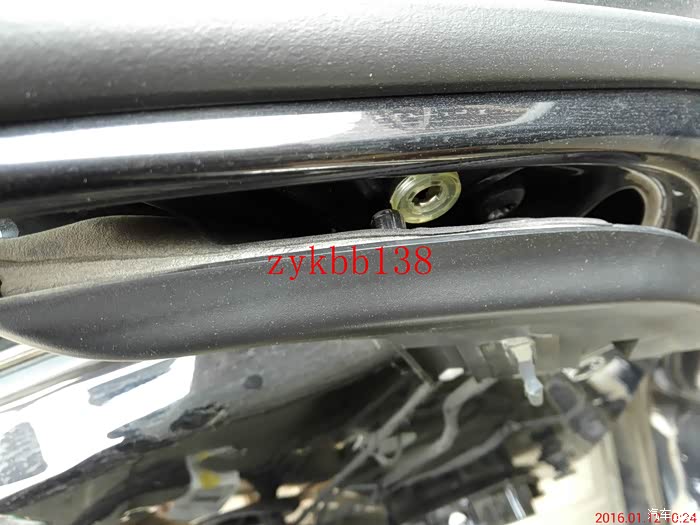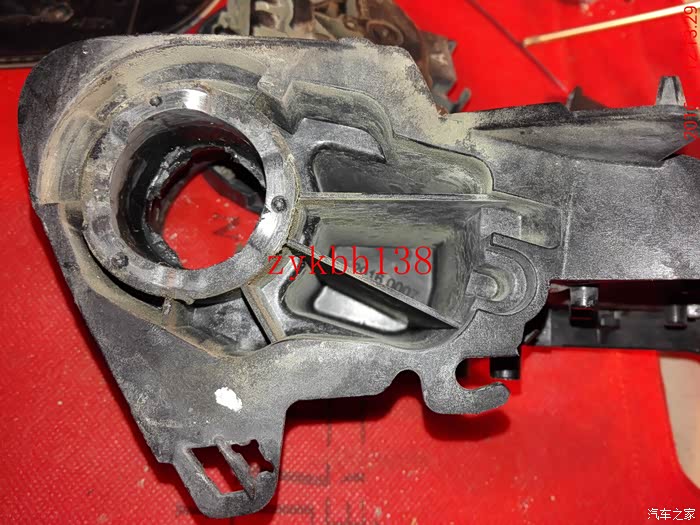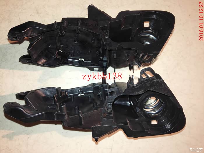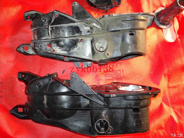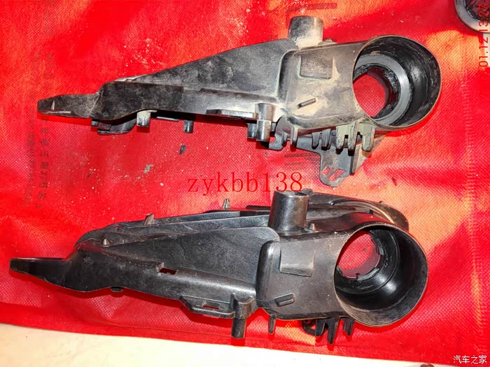 可以看到高配放置电机处是空的,原车低配的是用塑料填充起来的,既想省钱又有动手能力强的,完全可以把填充处去掉,用原车的支架改装,但是不是个容易的活,打磨过头了支架就报废了:
