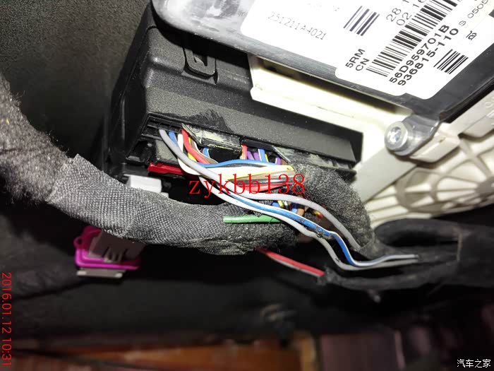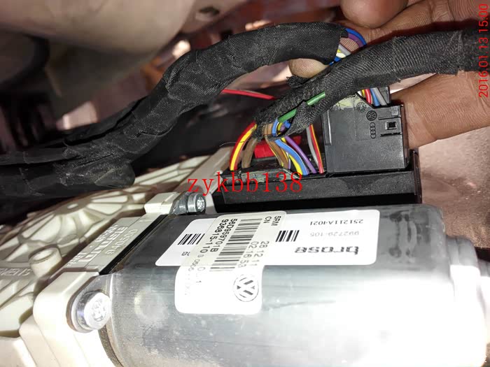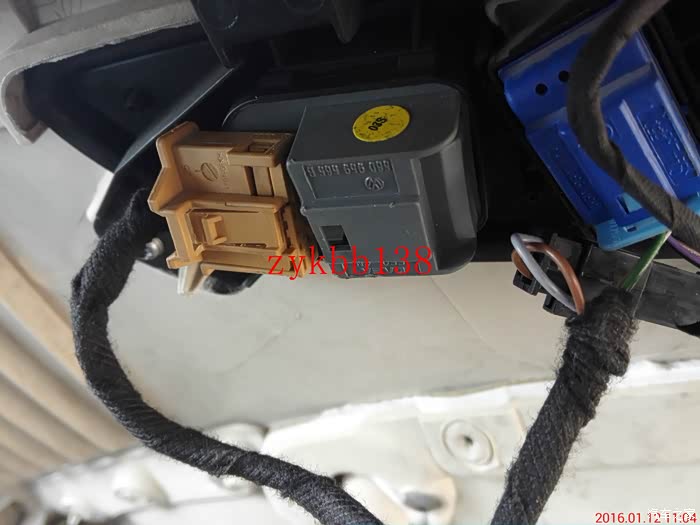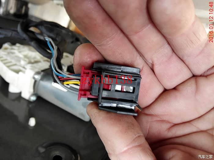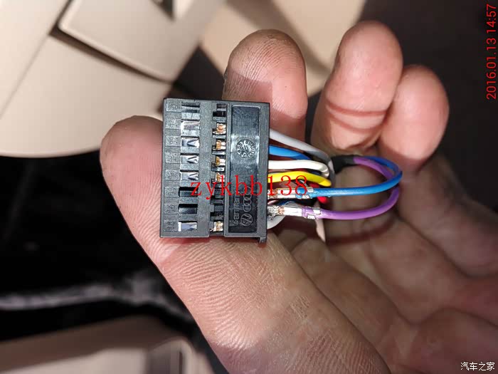 这里有必要说下,把折叠电机穿好后,两根线束的端子插头需要插到后视镜总插头的14和15孔上,插好5053开通功能后,要是后视镜折叠方向相反,就把那折叠电机线束的两根线束端子互换下就可以了: