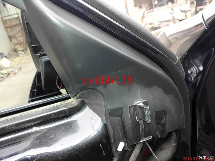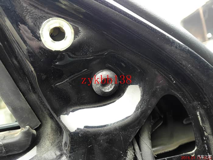 然后拆后视镜螺丝处,这个地方就一个卡子,轻轻一撬就开了,可以看到固定后视镜总成的那颗螺丝: 图片已删除