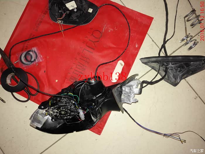 低配后视镜升级电动折叠所需要的全部配件全家福: