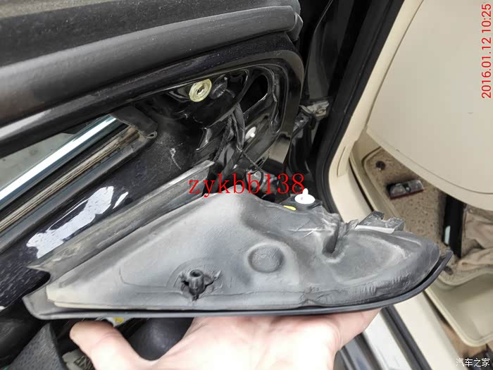 分解后视镜的照片在后面。下面拆除车门饰板: