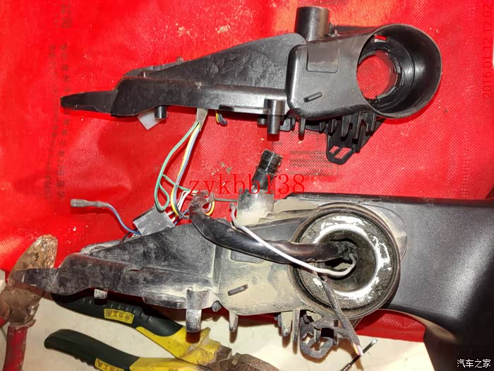把固定后视镜的螺丝拆下来,断开链接后视镜的各个线束,后视镜就下来了: