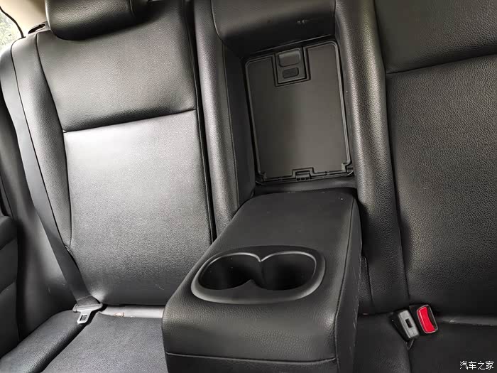 后排有一个扶手平时不需要的时候可以把它放下去,需要的时候打起来就可以了,放个茶杯什么,挺方便的,只是中间座椅设计有点高,坐久不舒服。