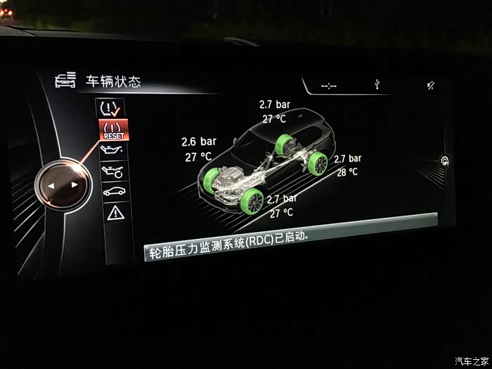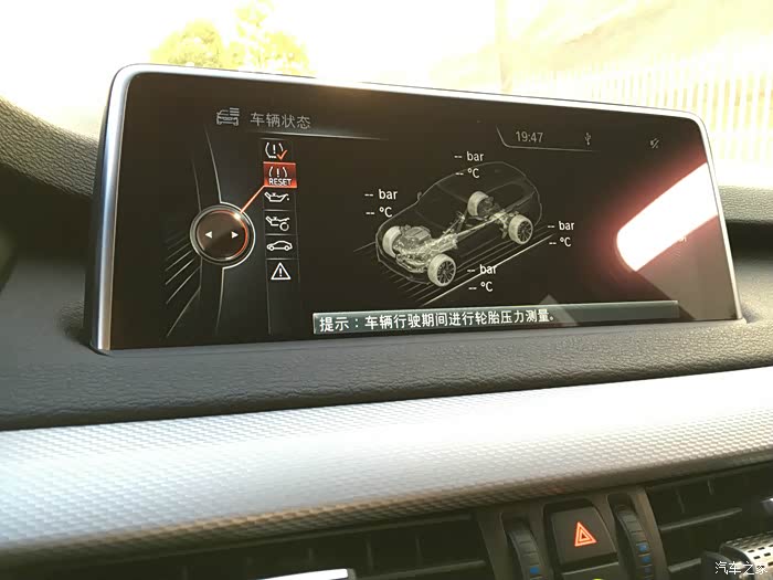 用iDrive进入"车辆状态"把胎压监测系统重置