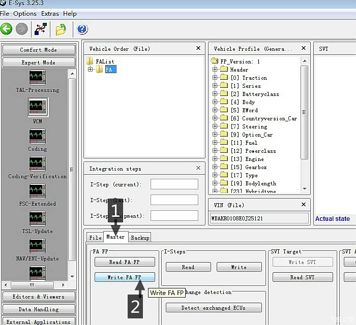 1.点"Master";2.点"Write FA FP"