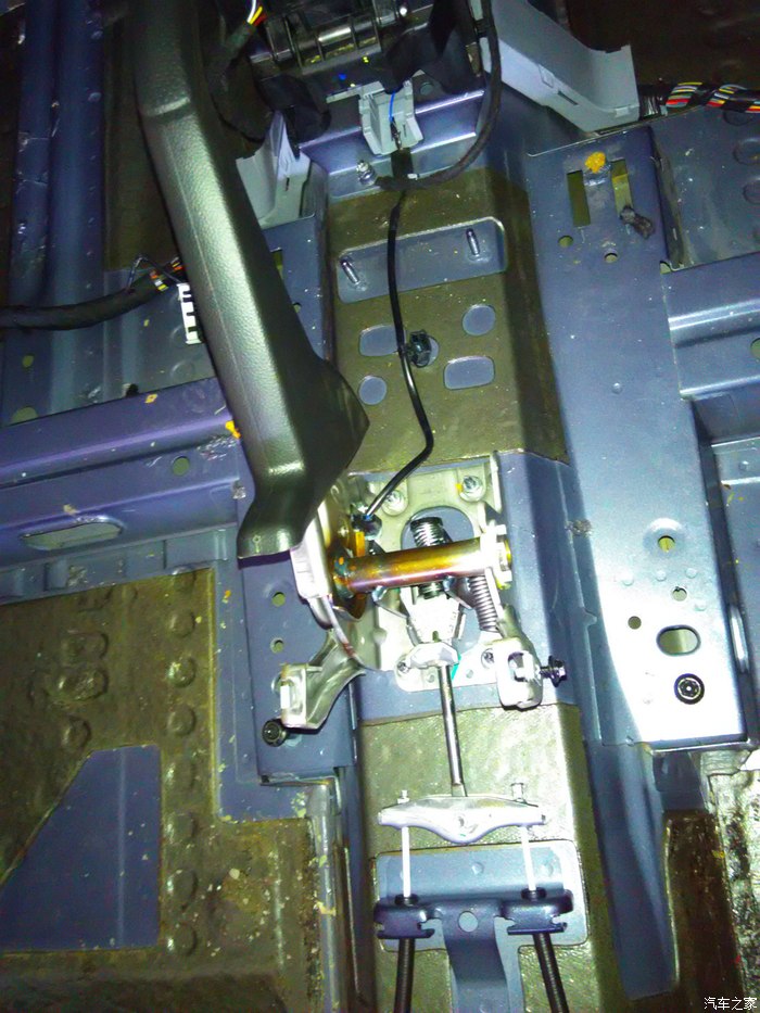 手刹内部结构,小科用的是外包塑料线,不是普通的钢丝绳,所以能保证小科的手刹轻松。