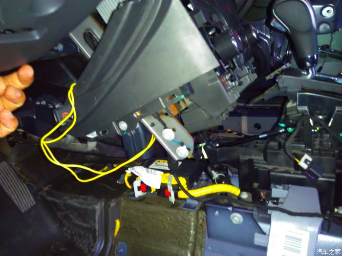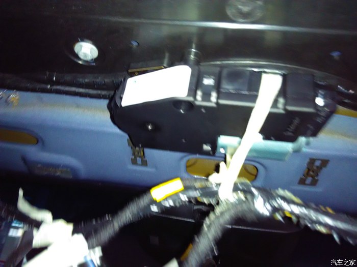 拆掉座椅和地板的样子,看到方向盘那边黄色的线了吗?那就是汽车安全气囊的线。标签右边那个盒子就是气囊电脑。如果你的气囊爆了,那么这个电脑业要换。现在市场上很多对气囊电脑刷数据来恢复电脑,个人觉得还是没问题的,只有硬件没问题,数据重新刷过应该是没问题的,但前提是数据要正确——因为车型更新速度太快了,科鲁兹上市几年更新多少款了????大家懂得