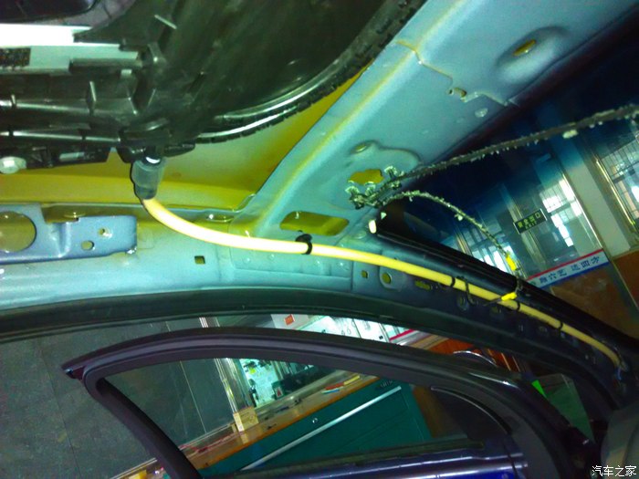 这是天窗的排水孔,直接通到地下了。左右各一根,顺着A柱走的