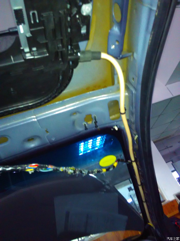 右边的一根,当你的天窗漏水的时候,先用个软线疏通一下这两根管子,看看是不是通的。很多车都是这个水管堵了造成天窗漏水。所以当天窗漏水的时候不急找修车店,自己用个塑料软线疏通一下看看是不是畅通再说。