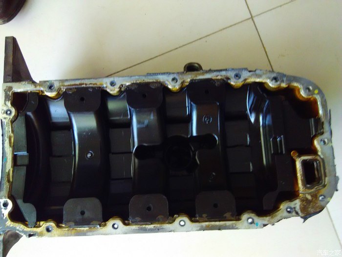 油底壳,铝制的。所以小科最好还是装个发动机护板吧,不然托底的话你就趴窝了。黑色的塑料是机油反射盘和防浪板,防止车辆晃动时机油在油底壳晃动,从而保证机油泵随时都能吸到机油。这个不是很特别的,很多发动机都带