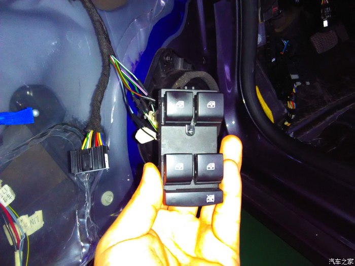 这是电动玻璃开关,小科的电动玻璃采用的是LIN总线控制,不再是传动的开关双动正反向控制了。