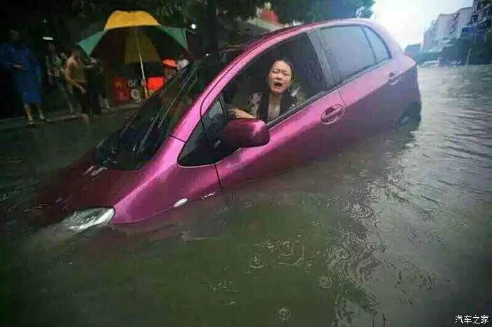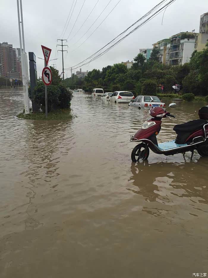 在车里提醒新手朋友,遇到水坑,千万别抱有侥幸心理,以为是自己是越野车底盘高就可以冲水。遇到这样的情况,尽量绕路,或者等待积水退去。如果一定要通过积水水域,切记一定要低速、匀速通过。一旦发生进气口进水,发动机熄火,就赶紧下车打电话拖车吧,千万别再次启动发动机,否则发动机就报废了。下面发几张武汉暴雨的情况: