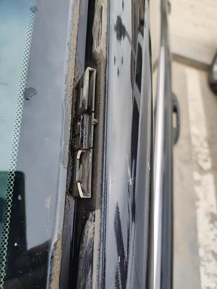 副驾驶位的,还有玻璃水的蓝色痕迹。洗干净,晾晒,准备打胶。