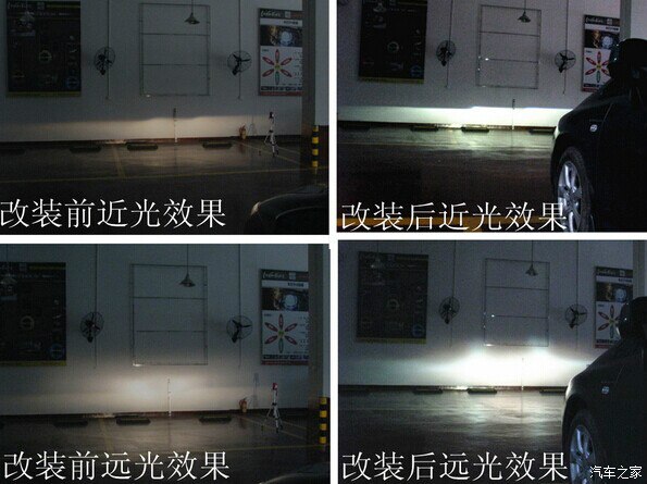 下面我拿一张车友提供的EXI照片,我经过拼图处理,让大家更了解更换氙气后与之前卤素的效果,以及对双光透镜以及各种产品的鉴定详解。