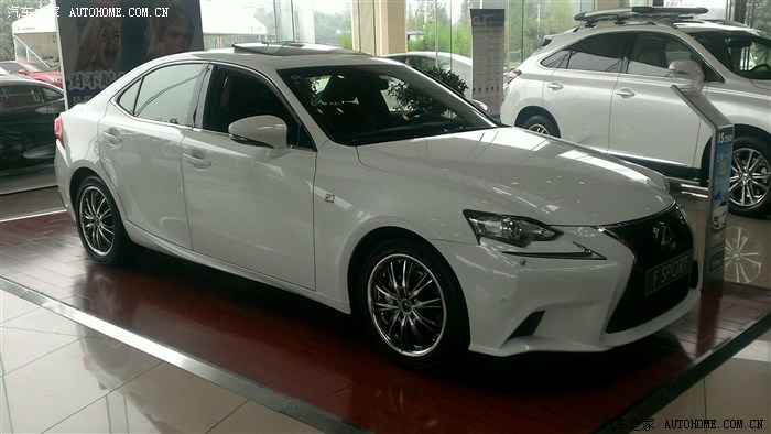 3: 雷克萨斯IS250 F,只看了车,不让试驾,原价,半月左右可提车。车型小巧,精致,很漂亮。不过这是在4s自己换了熏黑轮圈的前提下的效果,实际购买的真车效果未知。车内饰感觉也很精致,缺导航和倒车视频,缺雷克萨斯的G系统,其它包括电动后视都有,座椅臀部和后背部分不是真皮,是某种孔眼大的织物。值得注意的是座椅偏窄,本人偏瘦(130),感觉刚好,若是胖子需要去实际体验一下。在前排到操控舒适位置,后座还有一拳空间,感觉够用。后排中间位置不适合长途坐人。后排头部空间稍小,若来个上下大起伏,后排人员可能会头碰顶。后排座椅放倒后,与后备箱大概有十几厘米高差。因为没有试驾,对操控等无法辨别,只能说目前是辆外观好看的车。